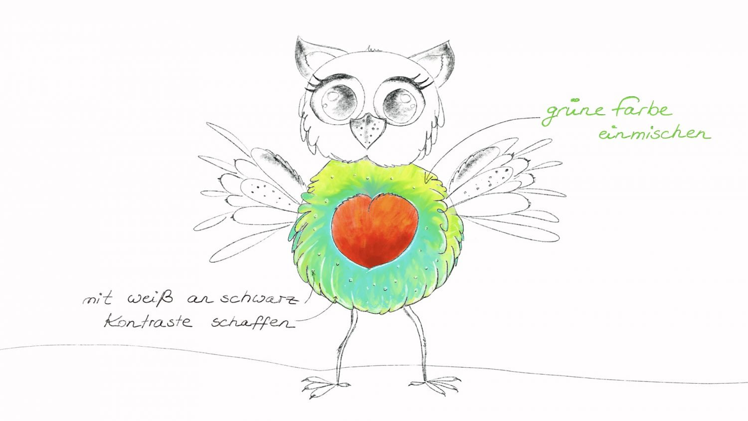 2. Die Beine und Krallen malst du am besten so, dass du selbst das Gefühl hast, dass EULCHEN feste stehen und tanzen kann.